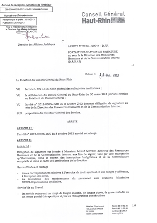 portant délégation de signature au sein de la Direction des Ressources Humaines e de la Communication Interne (D.R.H.C.I.) Resumé Pièces jointes ARRETE Assemblée : Non défini Date : 16/10/2013 Rapporteur : Non défini Collectivité : Conseil départemental du Haut-Rhin Direction : Non défini Service : Service Juridique Domaine : Organisation Interne Commission :