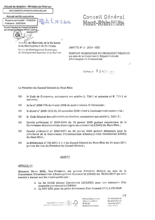portant nomination du Président Délégué au sein de la Commission Départementale d'Aménagement Commercial. Resumé Pièces jointes ARRETE Assemblée : Non défini Date : 13/03/2014 Rapporteur : Non défini Collectivité : Conseil départemental du Haut-Rhin Direction : Non défini Service : Service Développement Economique Domaine : Autres (non classés) Commission :