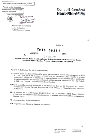 portant fixation de la dotation gloable de financement 2014 allouée au centre d'action médico-sociale précoce "Les Acacias" à ILLZACH. Resumé Pièces jointes ARRETE Assemblée : Non défini Date : 21/07/2014 Rapporteur : Non défini Collectivité : Conseil départemental du Haut-Rhin Direction : Non défini Service : Direction de l'Autonomie Domaine : Dotations financières Commission :