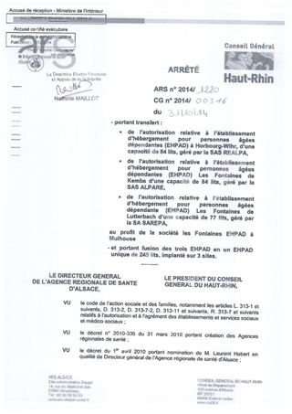 portant transfert de l'autorisation relative à l'établissement d'hébergement pour personnes âgées dépendantes (EHPAD) à HORBOURG-WIHR, d'une capacité de 84 lits, géré par la SAS REALPA, de l'autorisation relative à l'établissement d'hébergement pour perso