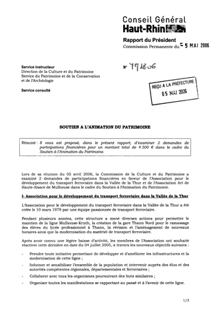 Soutien à l'animation du patrimoine Resumé Pièces jointes DELIBERATION RAPPORT Assemblée : Commission Permanente Date : 05/05/2006 Rapporteur : Non défini Collectivité : Conseil départemental du Haut-Rhin Direction : Non défini Service : Service du Patrimoine et de la Conservation Domaine : Commission : Commission Permanente