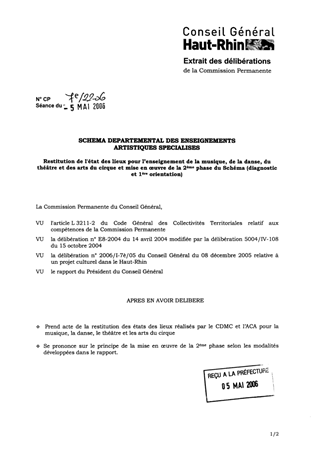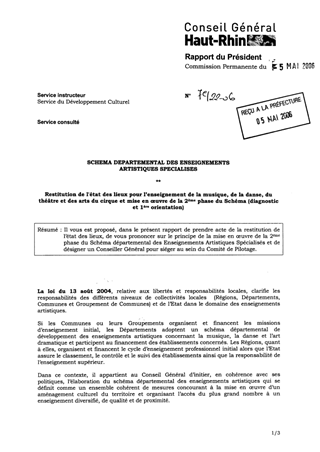 Schéma départemental des enseignements artistiques spécialisés. Restitution de l'état des lieux pour l'enseignement de la musique, … Resumé Pièces jointes DELIBERATION RAPPORT Assemblée : Commission Permanente Date : 05/05/2006 Rapporteur : Non défini Collectivité : Conseil départemental du Haut-Rhin Direction : Non défini Service : Service du développement culturel Domaine : Communication Commission : Commission Permanente