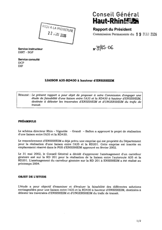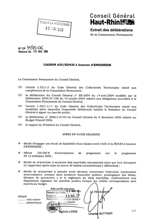 Liaison A 35/ RD 430 à hauteur d'Ensisheim Resumé Pièces jointes DELIBERATION RAPPORT Assemblée : Commission Permanente Date : 19/05/2006 Rapporteur : Non défini Collectivité : Conseil départemental du Haut-Rhin Direction : Non défini Service : Direction des Routes Domaine : Urbanisme Commission : Commission Permanente