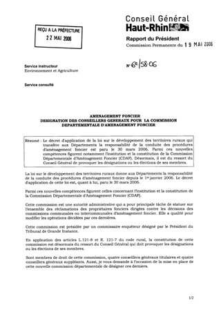 Aménagement foncier - Désignation des Conseillers Généraux pour la commission départementale d'aménagement foncier Resumé Pièces jointes DELIBERATION RAPPORT Assemblée : Commission Permanente Date : 19/05/2006 Rapporteur : Non défini Collectivité : Conseil départemental du Haut-Rhin Direction : Non défini Service : Service Environnement et Agriculture Domaine : Commission : Commission Permanente