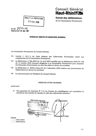 Il est proposé, à la veille de l’inauguration du Bioscope, de prendre acte des garanties de l’avenant N° 3 et du Contrat de subdélégation, qui consolident la protection des intérêts du Symbio et celle des collectivités membres.