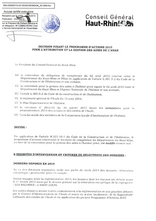 fixant le programme d'actions 2015 pour l'attribution et la gestion des aides de l'ANAH Resumé Pièces jointes ARRETE Assemblée : Non défini Date : 26/03/2015 Rapporteur : Non défini Collectivité : Conseil départemental du Haut-Rhin Direction : Non défini Service : Service Habitat et Solidarités Territoriales Domaine : Autres (non classés) Commission :