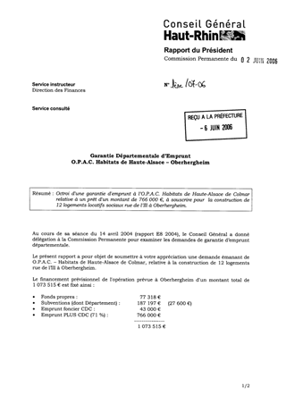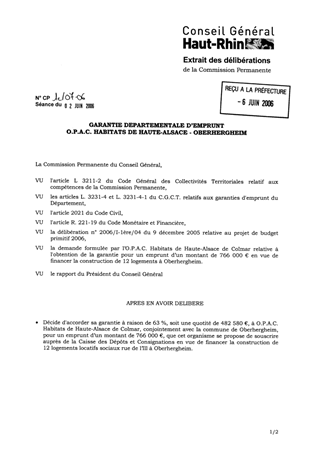 Garantie départementale d'emprunt. OPAC Habitats de Haute Alsace - Oberhergheim