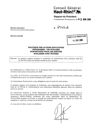 Politique des actions éducatives. Vie scolaire. Subventions pour les sorties scolaires avec nuitées