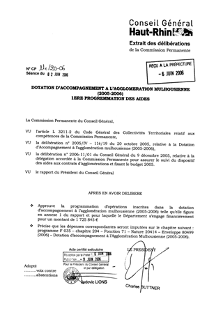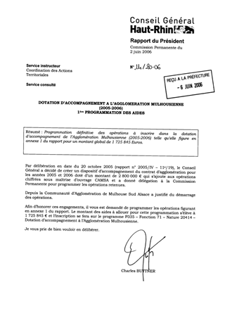 Dotation d'accompagnement à l'agglomération mulhousienne (2005-2006) - 1ère programmation des aides