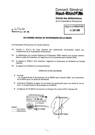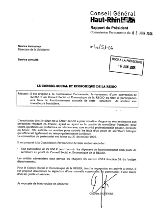 Il est proposé à la Commission Permanente, le versement d’une subvention de 22 868 € au Conseil Social et Economique de la REGIO au titre la participation aux es frais de fonctionnement annuels de cette structure de soutien aux travailleurs frontaliers.