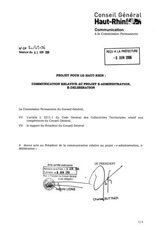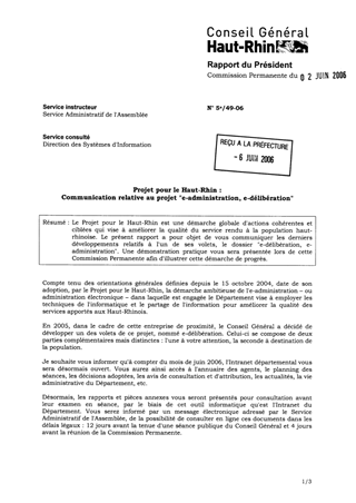 Projet pour le Haut-Rhin : Communication relative au projet e.administration, e.délibération