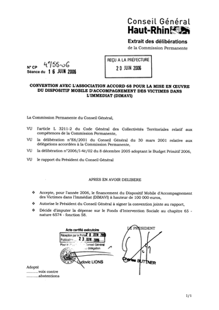 convention avec l'association Accord 68 pour la mise en oeuvre du dispositif d'accompagnement des victimes dans l'immédiat (DIMAVI)