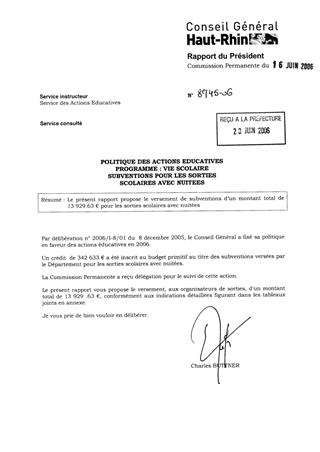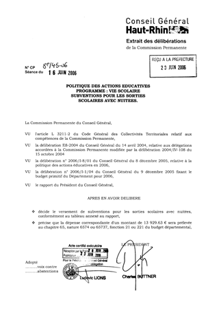 Politique des actions éducatives. Programme : vie scolaire. Subventions pour les sorties scolaires avec nuitées