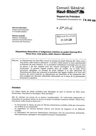 Dispositions financières et budgétaires relatives au projet Interreg III A "Deux rives, trois ponts, mille choses à découvrir"