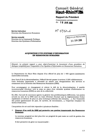 Le présent rapport a pour objet d’autoriser le lancement d’une procédure de dialogue compétitif pour l’acquisition d’un Système d’Information en Ressources Humaines.