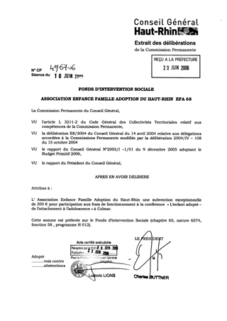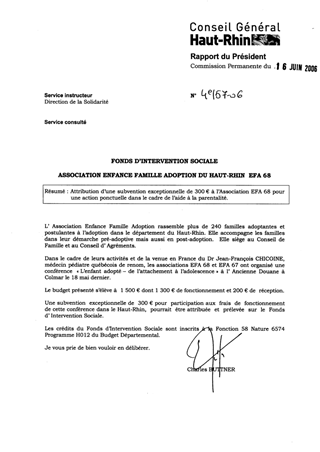 Fonds d'intervention sociale. Association enfance famille adoption du Haut-Rhin EFA 68