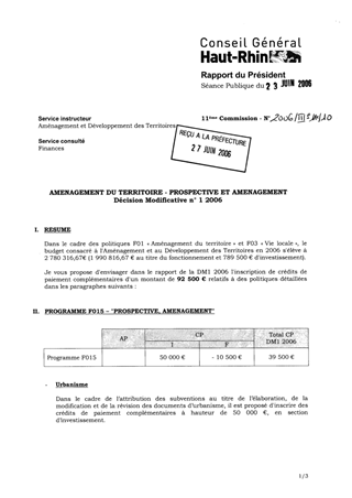 Aménagement du territoire - Prospective et aménagement - Décision Modificative n° 1 2006