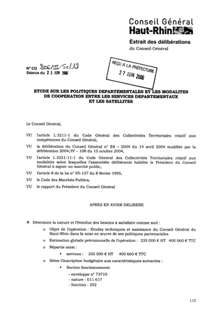 Le 15 octobre 2004, le Conseil Général, durant sa réunion en séance plénière consacrée au PROJET POUR LE HAUT-RHIN, a diagnostiqué un « besoin profond de remise en perspective de ses politiques et de ses modes d’interventions ». Parmi les nombreux moyens dont dispose le Conseil Général pour conduire ses politiques, le dispositif constitué par l’ensemble des structures mises en place par le Département est un levier important pour son action : au fil des années notre collectivité a créé différents organismes, conçus comme les « bras armés » de sa politique. Il était nécessaire de s’interroger sur le fonctionnement actuel d’un tel dispositif.