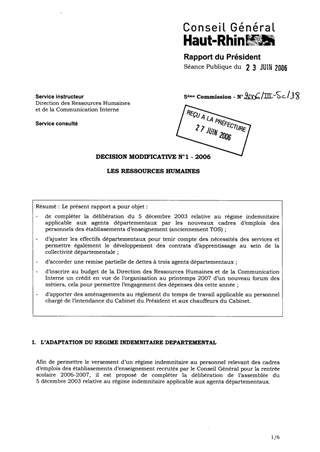 Décision Modificative n° 1 2006 - Les Ressources Humaines