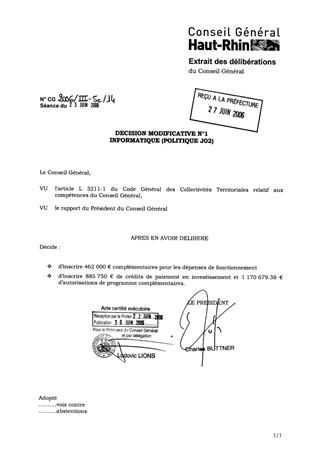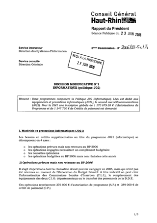 Deux programmes composent la Politique J02 (Informatique). L’un est dédié aux équipements et prestations informatiques (J021), le second aux télécommunications (J022). Pour la DM1 une inscription globale de 1 170 679.38 € d’Autorisations de Programme et de 1 347 750 € de Crédits de paiement est demandé.