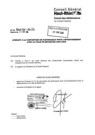 Avenant à la convention de partenariat pour l'investissement avec la Ville de MULHOUSE 2006-2008