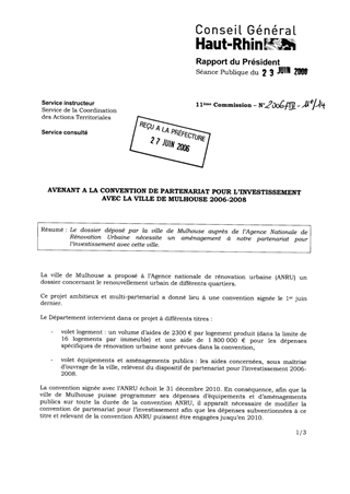 Le dossier déposé par la ville de Mulhouse auprès de l’Agence Nationale de Rénovation Urbaine nécessite un aménagement à notre partenariat pour l’investissement avec cette ville.