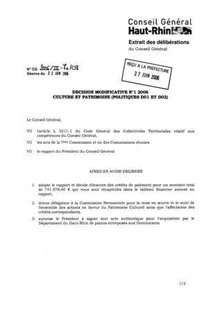 Décision Modificative n° 1 2006 - Culture et Patrimoine (politiques D01 et D02)
