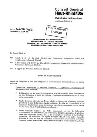 Délégation à la Commission Permanente du Conseil Général - domaine des opérations d'aménagement des infrastructures routières