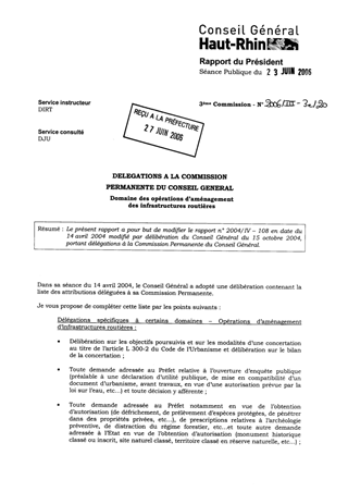 Le présent rapport a pour but de modifier le rapport n° 2004/IV – 108 en date du 14 avril 2004 modifié par délibération du Conseil Général du 15 octobre 2004, portant délégations à la Commission Permanente du Conseil Général.