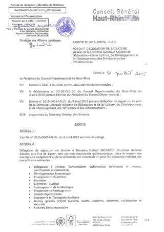portant délégation de signature au sein de la Direction Générale Adjointe de l'Education et de la Culture, du Développement et de l'Aménagement des Territoires et des Infrastructures Resumé Pièces jointes ARRETE Assemblée : Non défini Date : 31/07/2015 Rapporteur : Non défini Collectivité : Conseil départemental du Haut-Rhin Direction : Non défini Service : Direction d'Appuis Juridique et Documentaire Domaine : Organisation Interne Commission :