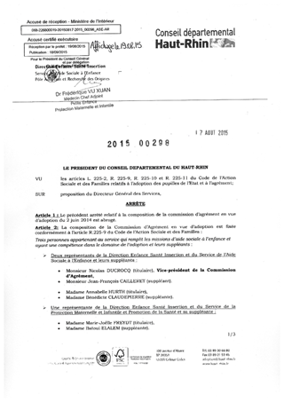 arrêté relatif à la composition de la Commission d'Agrément en vue d'adoption Resumé Pièces jointes ARRETE Assemblée : Non défini Date : 17/08/2015 Rapporteur : Non défini Collectivité : Conseil départemental du Haut-Rhin Direction : Non défini Service : Direction Enfance Santé Insertion Domaine : Autres (non classés) Commission :