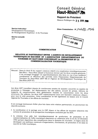 Communication relative au partenariat entre l'Agence de Développement Touristique du Bas-Rhin et l'Association Départementale du Tourisme du Haut-Rhin concernant la promotion et la commercialisation touristique