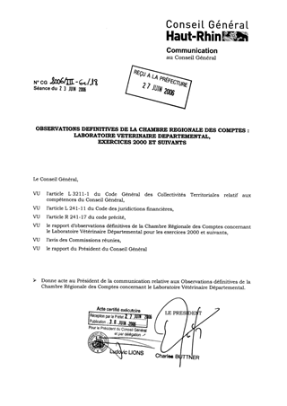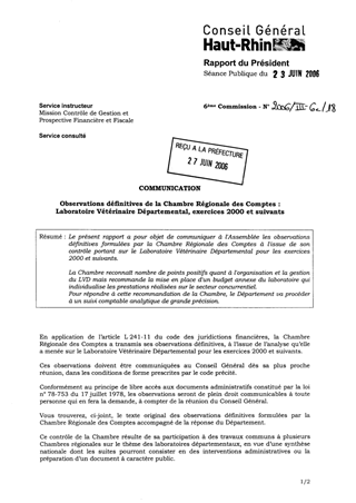 COMMUNICATION. Observations définitives de la Chambre Régionale des Comptes : Laboratoire Vétérinaire Départemental, exercices 2000 et suivants