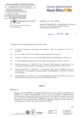 portant nomination du Président délégué au sein de la commission départementale d'aménagement commercial Resumé Pièces jointes ARRETE Assemblée : Non défini Date : 15/10/2015 Rapporteur : Non défini Collectivité : Conseil départemental du Haut-Rhin Direction : Non défini Service : Direction de l'Aménagement du Territoire et de l'Economie Domaine : Autres (non classés) Commission :