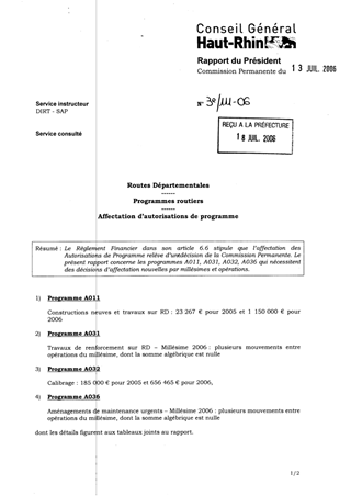Le Règlement Financier dans son article 6.6 stipule que l’affectation des Autorisations de Programme relève d’un décision de la Commission Permanente. Le présent rapport concerne les programmes A011, A031, A032, A036 qui nécessitent des décisions d’affectation nouvelles par millésimes et opérations.