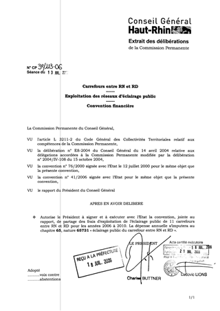 Carrefours entre RN et RD. Exploitation des réseaux d'éclairage public. Convention financière