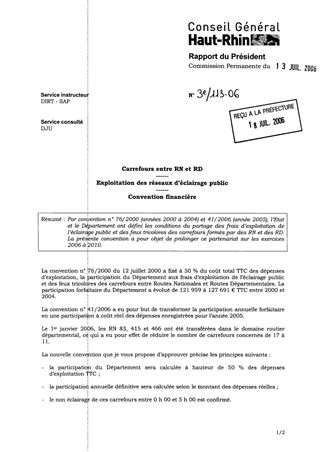 Par convention n° 76/2000 (années 2000 à 2004) et 41/2006 (année 2005), l’Etat et le Département ont défini les conditions du partage des frais d’exploitation de l’éclairage public et des feux tricolores des carrefours formés par des RN et des RD. La présente convention a pour objet de prolonger ce partenariat sur les exercices 2006 à 2010.