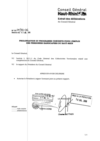 l’ancien programme concerté pour l’emploi des personnes handicapées du Haut-Rhin a été défini pour une durée de 5 ans (2001-2005). Les partenaires de ce programme proposent de prolonger sa durée d’un an par voie d’avenant.
