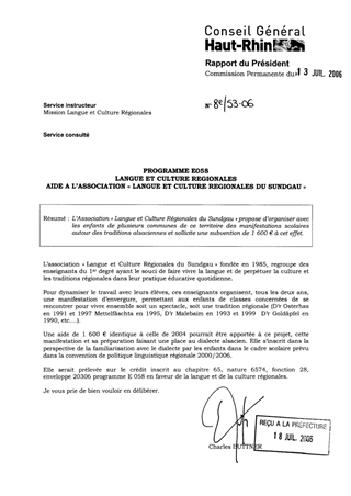 Langue et Culture Régionales.. Aide à l'association "Langue et Culture Régionales du Sundgau"