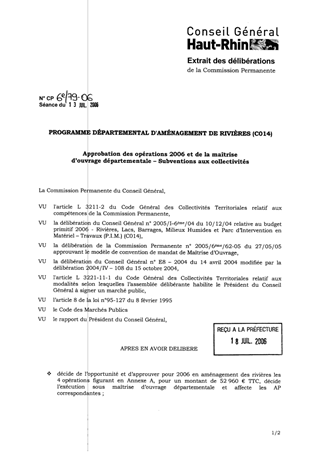 Programme départemental d'aménagement de rivières (CO14) - Approbation des opérations 2006 et de la maîtrise d'ouvrage départementale - subventions aux collectivités