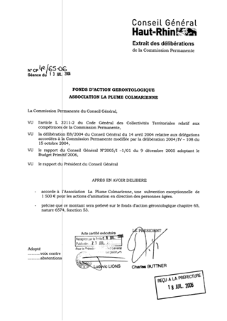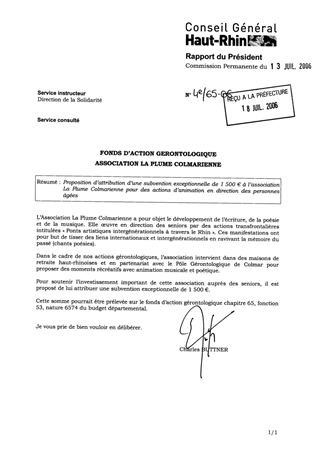Fonds d'action gérontologique. Association La Plume Colmarienne