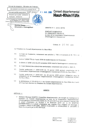 portant nomination du Président délégué au sein de la Commission Départementale d'Aménagement Commercial Resumé Pièces jointes ARRETE Assemblée : Non défini Date : 20/04/2016 Rapporteur : Non défini Collectivité : Conseil départemental du Haut-Rhin Direction : Non défini Service : Direction Europe Attractivité et Aménagement Domaine : Autres (non classés) Commission :