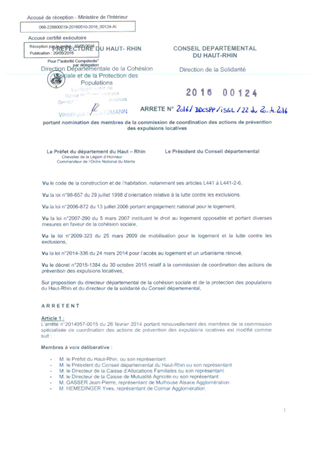 portant nomination des membres de la commission de coordination des actions de prévention des expulsions locatives Resumé Pièces jointes ARRETE Assemblée : Non défini Date : 20/04/2016 Rapporteur : Non défini Collectivité : Conseil départemental du Haut-Rhin Direction : Non défini Service : Direction de la Solidarité Domaine : Autres (non classés) Commission :