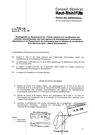 Participation au financement de l'étude relative à la coordination des activités internationales des 3 agences de développement économique alsaciennes et au financement des honoraires pour la mission de recrutem- d'un directeur pour "Alsace International