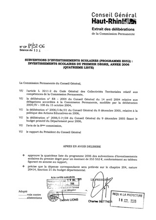 Subventions d'investissements scolaires : investissements scolaires du 1er degré - année 2006 (4ème liste)