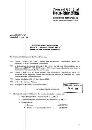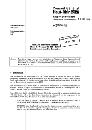 Rocade Ouest de Colmar - Phase 2 : tronçon RD 418 - RD 30. Passation des marchés de service