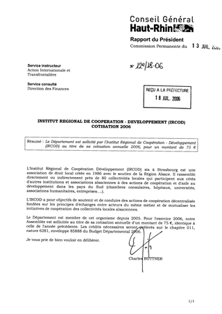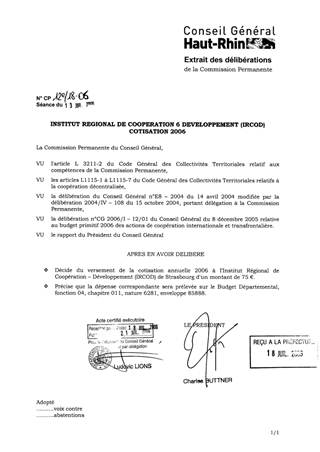 Institut Régional de coopération - développement (IRCOD) - cotisation 2006