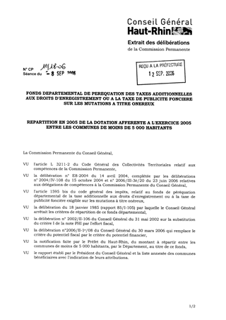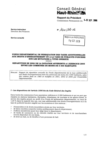 Rapport de répartition annuelle du Fonds départemental de la taxe additionnelle aux droits d'enregistrement entre les communes de moins de 5 000 habitants, selon des critères fixés en 1985 et modifiés en 2001, 2002 et 2006 par l'Assemblée Départementale.