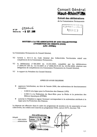 Le présent rapport propose l’attribution de crédits de fonctionnement entre les différentes associations œuvrant en faveur de la protection de la nature, en conformité avec l’enveloppe globale « soutien à la vie associative et aux collectivités » fixée lors du vote du BP 2006 en date du 8 décembre 2005 et après soumission à la Commission de l’Agriculture, de l’Environnement et du Cadre de Vie réunie le 3 juillet 2006.
