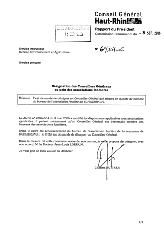 Il est demandé de désigner un Conseiller Général qui siègera en qualité de membre du bureau de l’association foncière de SCHLIERBACH.